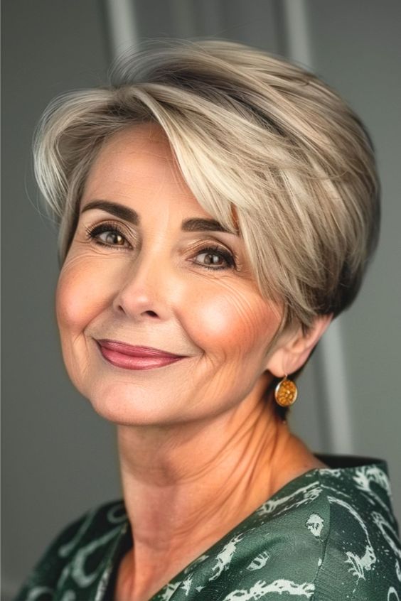 Kort haar bij oudere dames kan een verrassend verjongend effect hebben. Het verlegt de aandacht naar de gelaatstrekken, waardoor een jeugdige vitaliteit wordt benadrukt.